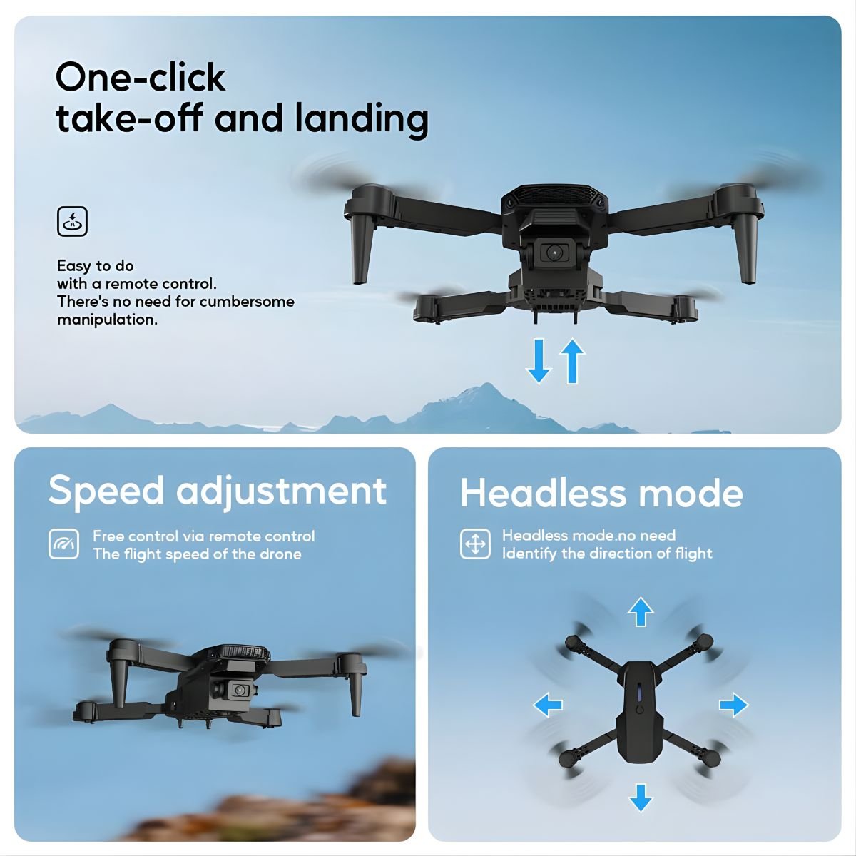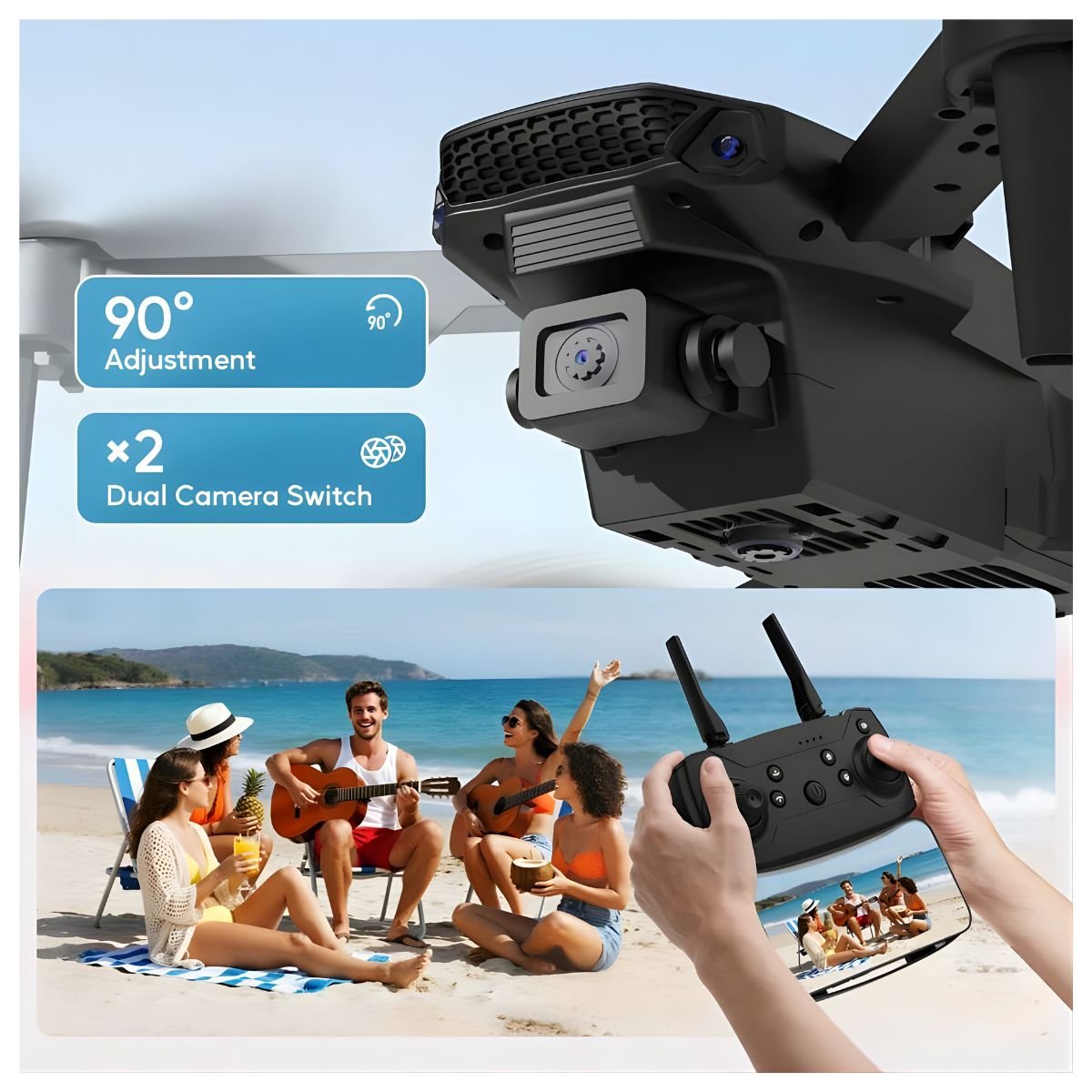 El Drone AXNEN E88HD es un cuadricóptero compacto pensado para quienes desean iniciarse en el mundo del vuelo recreativo y la fotografía aérea sin complicaciones. Su diseño plegable facilita el transporte, mientras que su estructura ligera permite operar el dispositivo con estabilidad durante cada vuelo. Este dron destaca por integrar una cámara dual en alta definición, que permite capturar imágenes desde dos ángulos distintos con solo pulsar un botón.